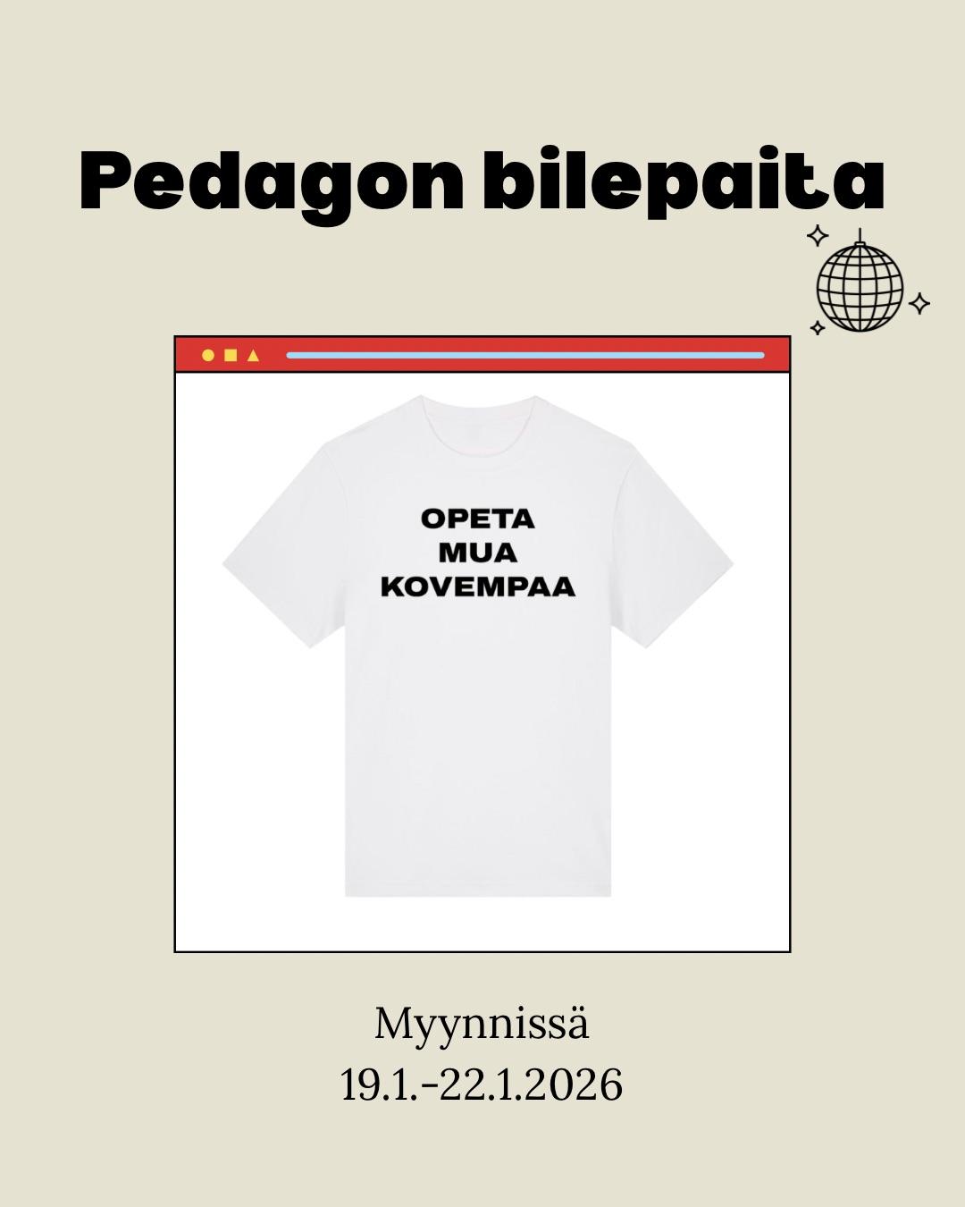 Pedagon bilepaidat tulossa myyntiin!!❤️ Etuosaa koristaa jo haalarimerkistä ja vyöstämme tuttu teksti ”OPETA MUA KOVEMPAA”.❤️🔥 Takana on Pedago ry:n logo. Paita on saatavailla myös mustana, jolloin…