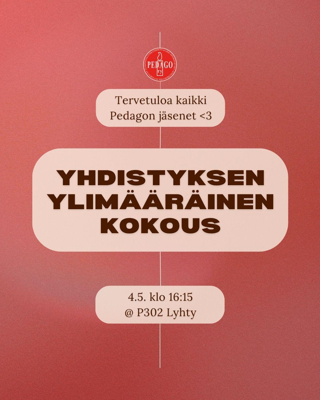 Yhdistyksen ylimääräinen kokous järjestetään 4.5. klo 16.15 kokoustila Lyhdyssä. Tarkempi kokouskutsu lähetetään vähintään viikkoa ennen kokousta