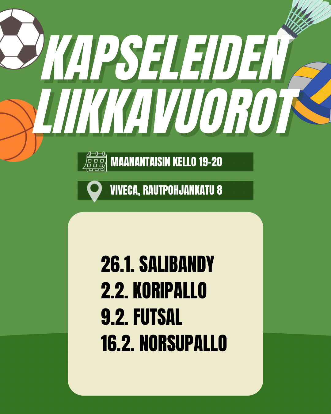 Kapseleiden liikuntavuorot jatkuvat jälleen! 🎉