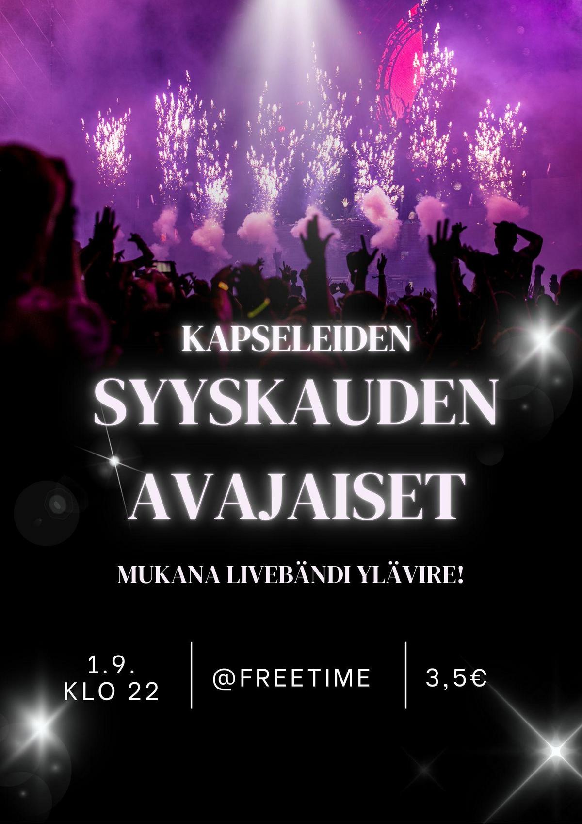 Maanantaina 1.9. Freetimen valtaa KAPSELIIT, jeee On siis aika mega mahtaville Kapseleiden syyskauden avajaisille Bileissä nähdään myös esiintymässä huikea Ylävire, joten tätä et halua jättää välistä