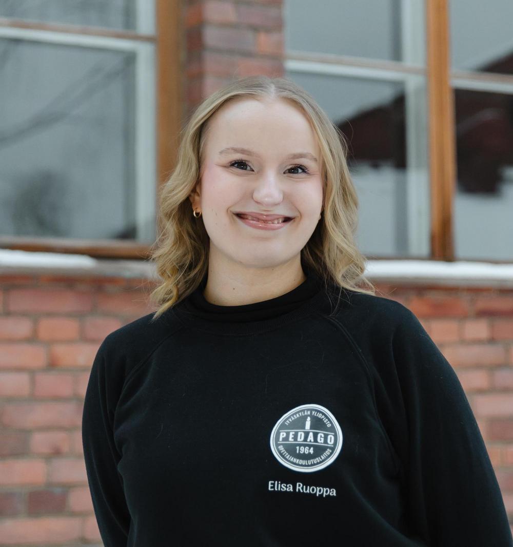 Seuraavana meillä on kunnia esitellä yksi todella kunnianhimokas järjestöpöhisijä Elisa Ruoppa. Hän valvoo tänä(kin) vuonna meidän pedagolaisten etuja sekä huolehtii Pedagon kestävästä kehityksestä.